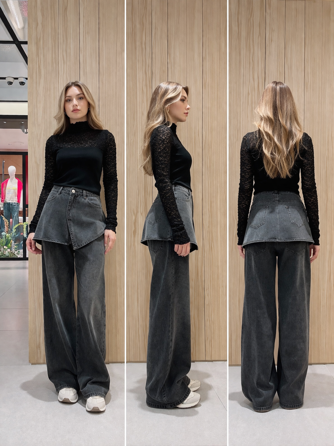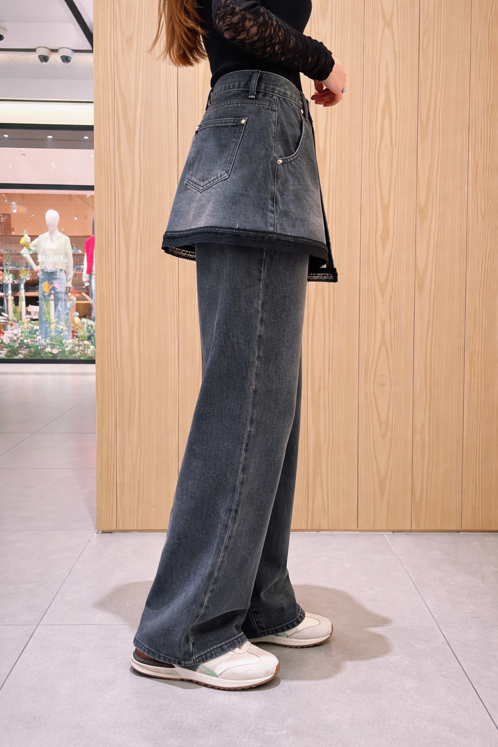 -유니크한 덫장 스커트 밑단의 레이스 장식 포인트