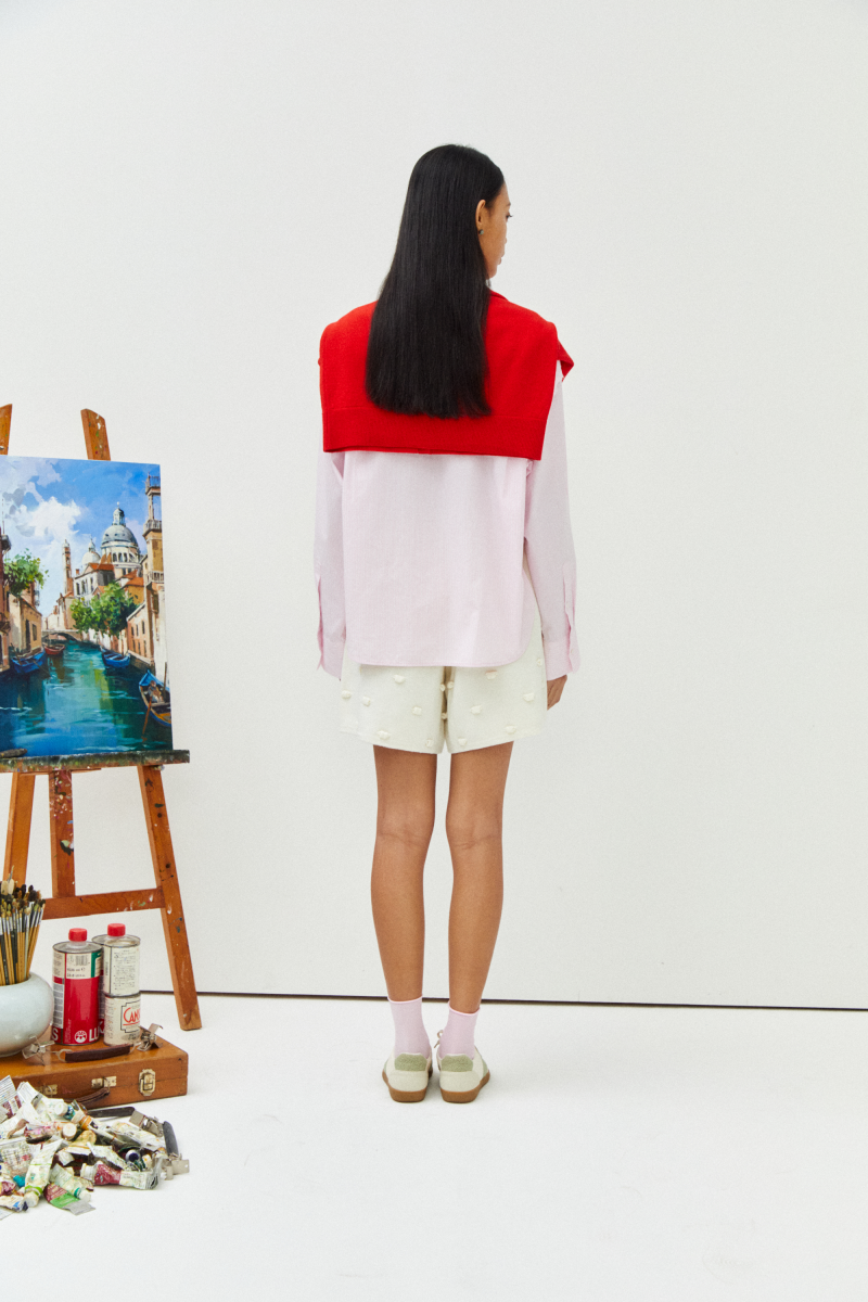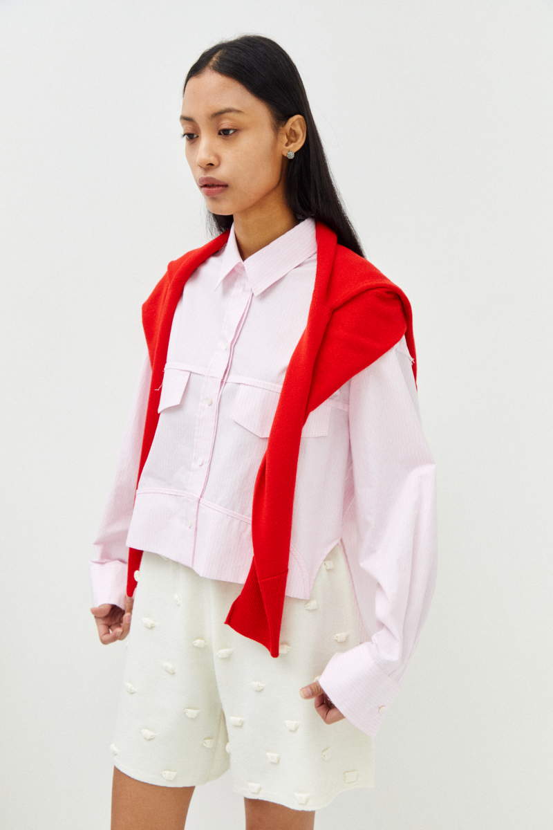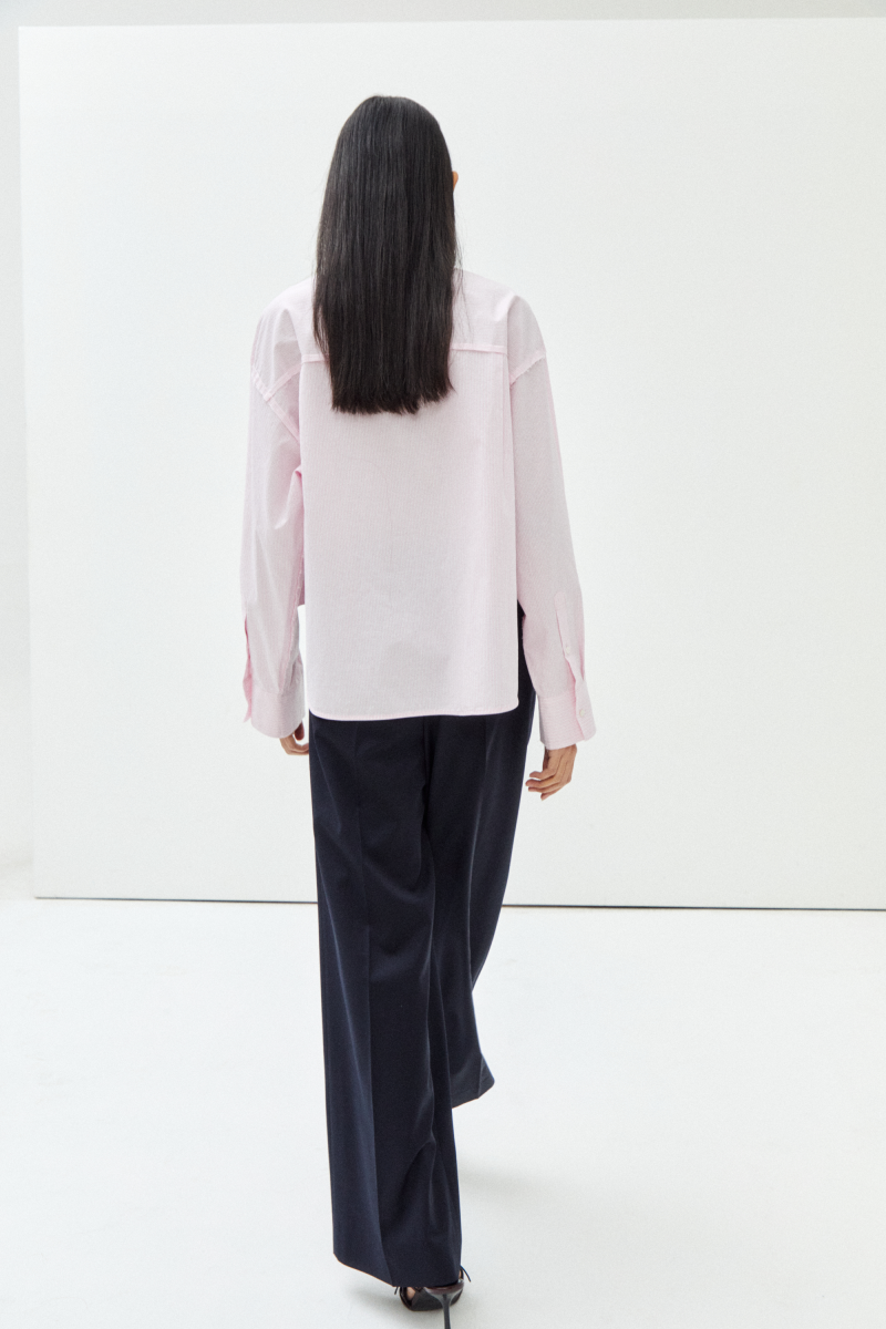 -면 소재의 입체적인 표면감이 돋보이는 박시형 오버사이즈 셔츠