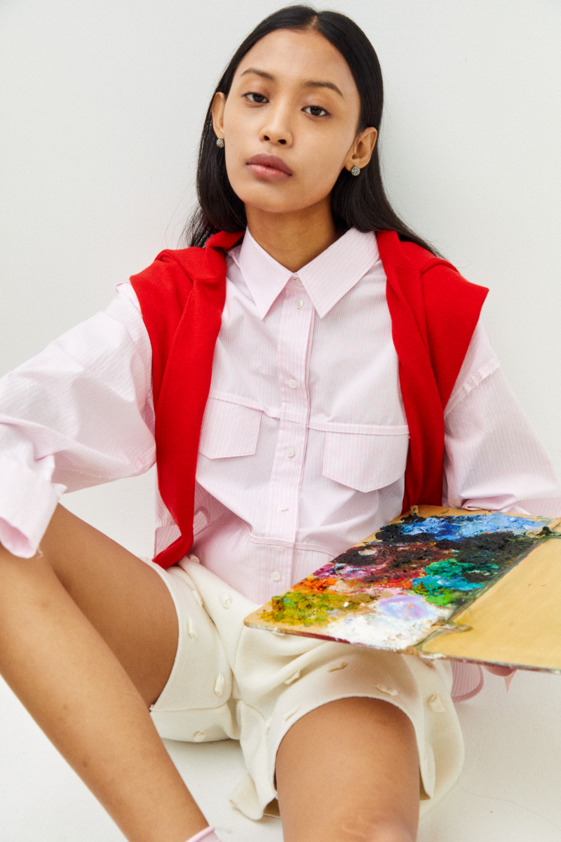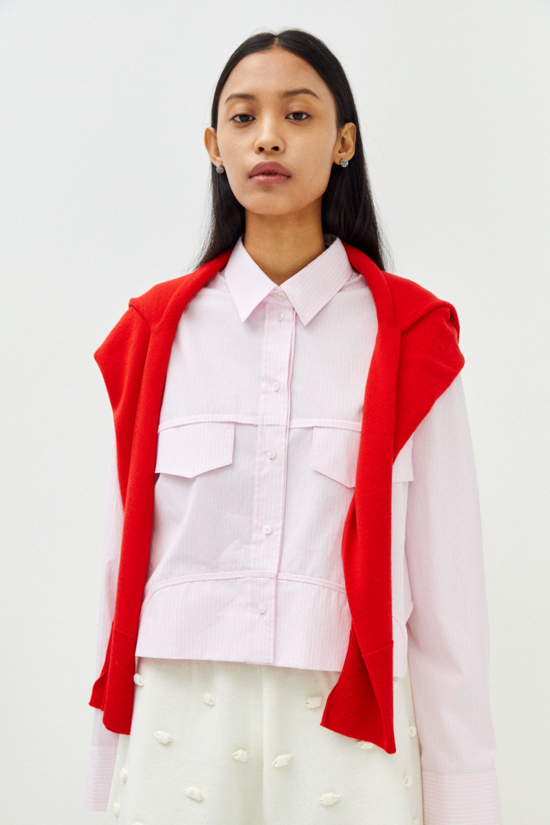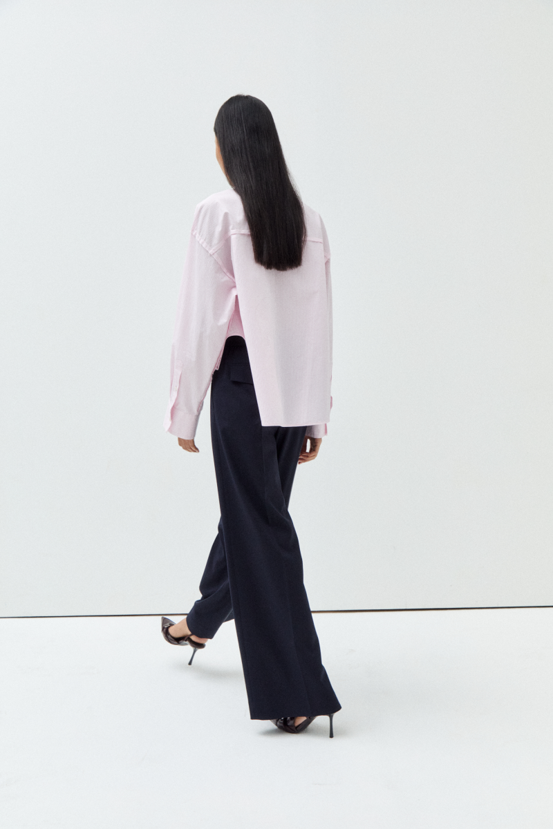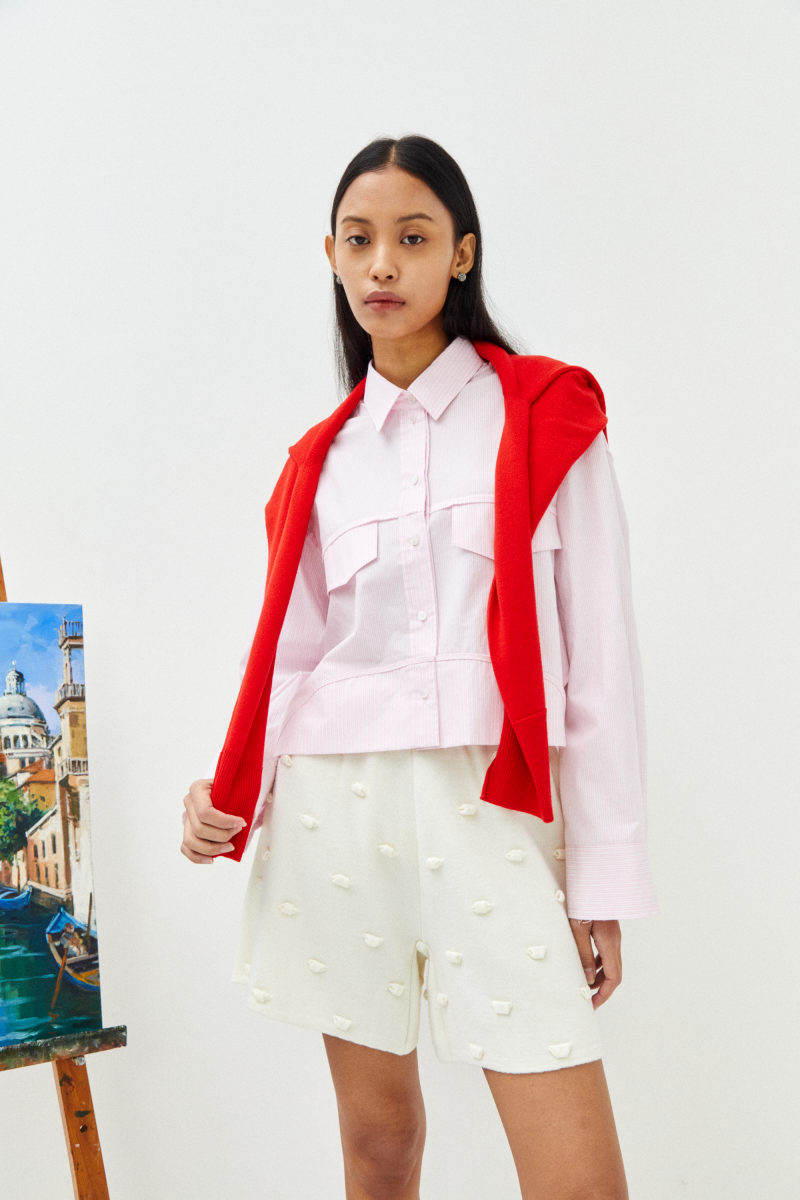 -면 소재의 입체적인 표면감이 돋보이는 박시형 오버사이즈 셔츠