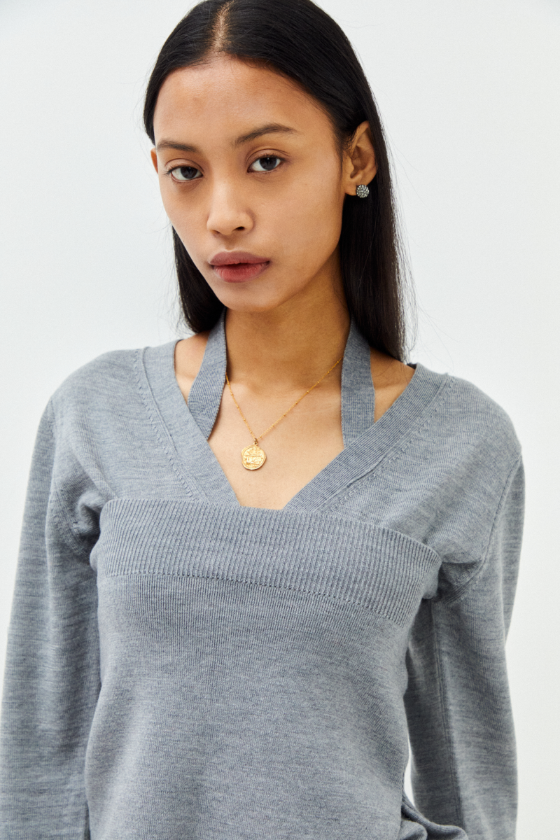 · 센슈얼한 홀터넥 디테일과 소매트임 디테일이 포인트