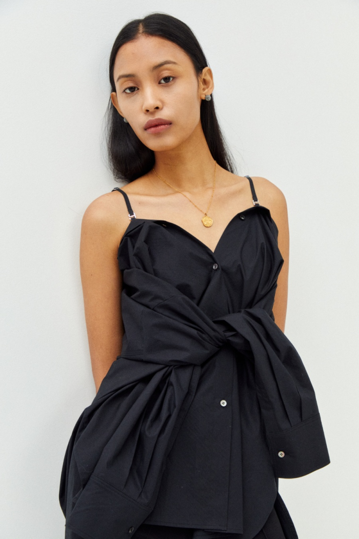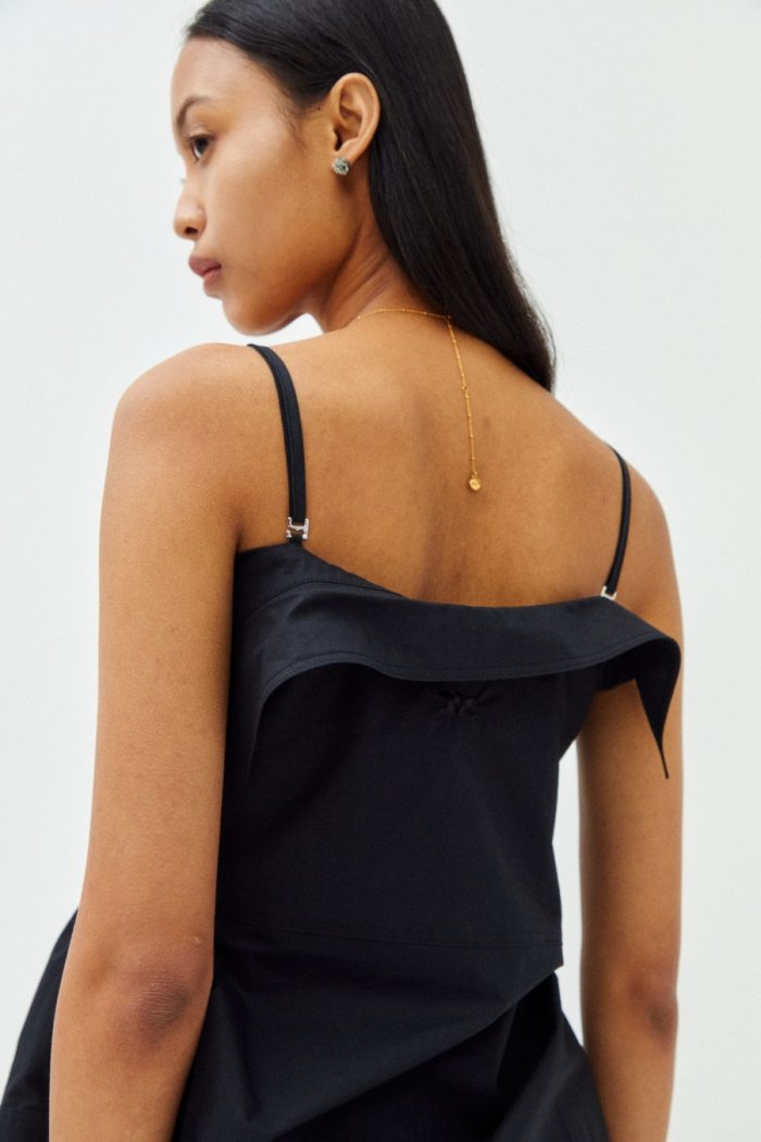 · 오프숄더 트위스트 디테일이 돋보이는 탑