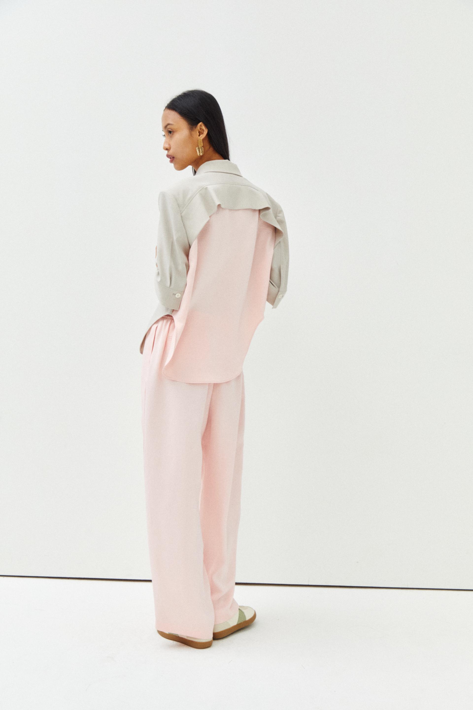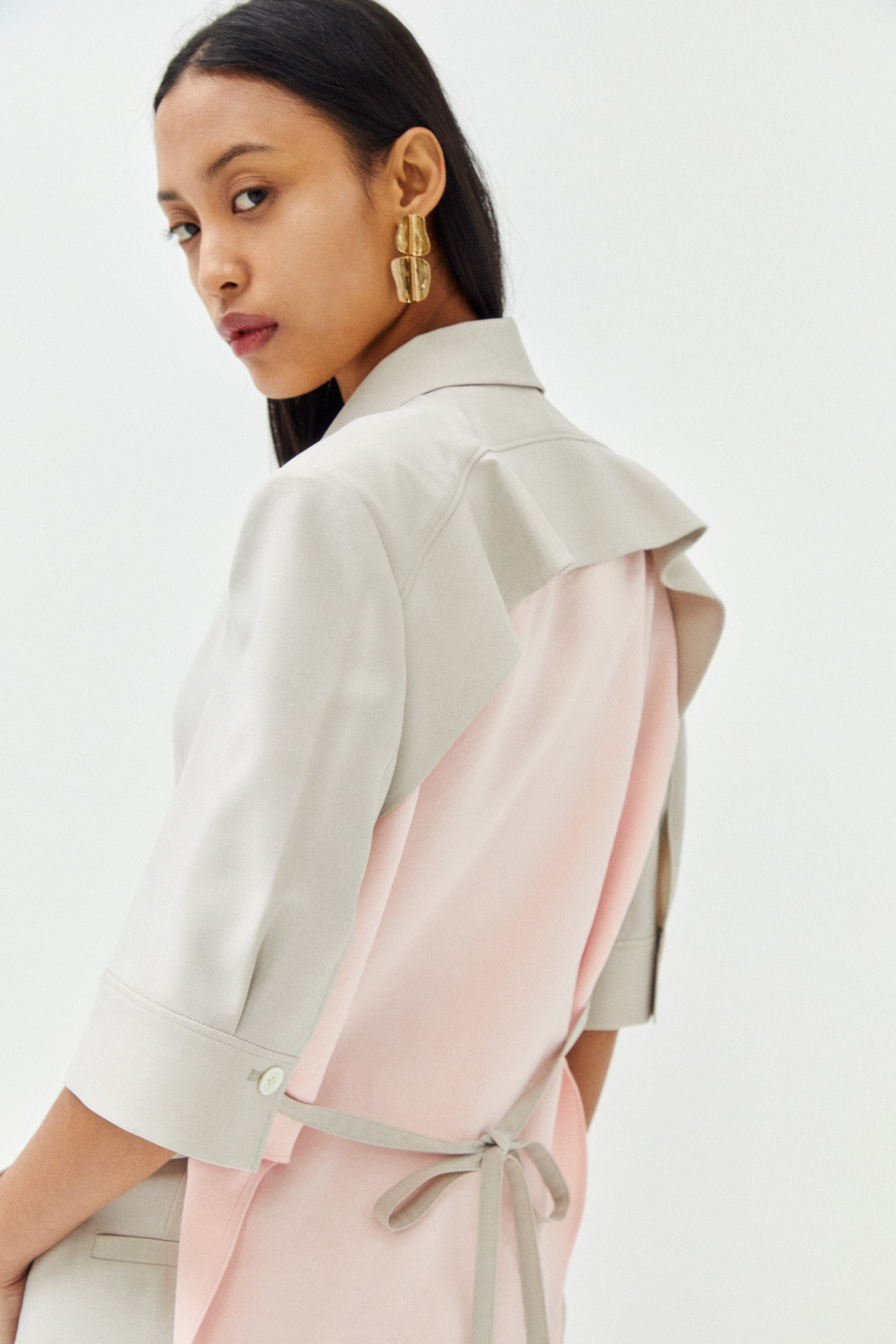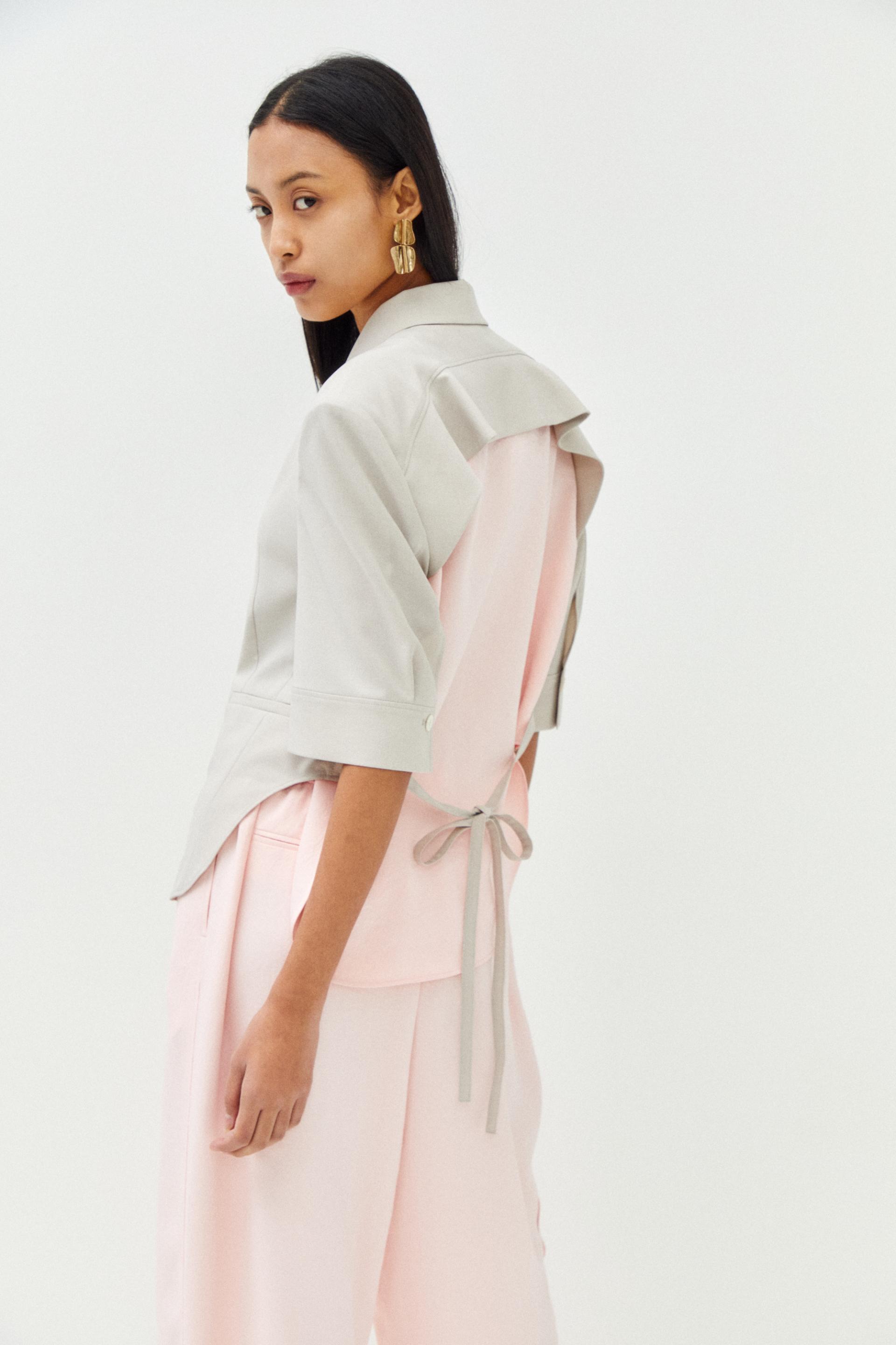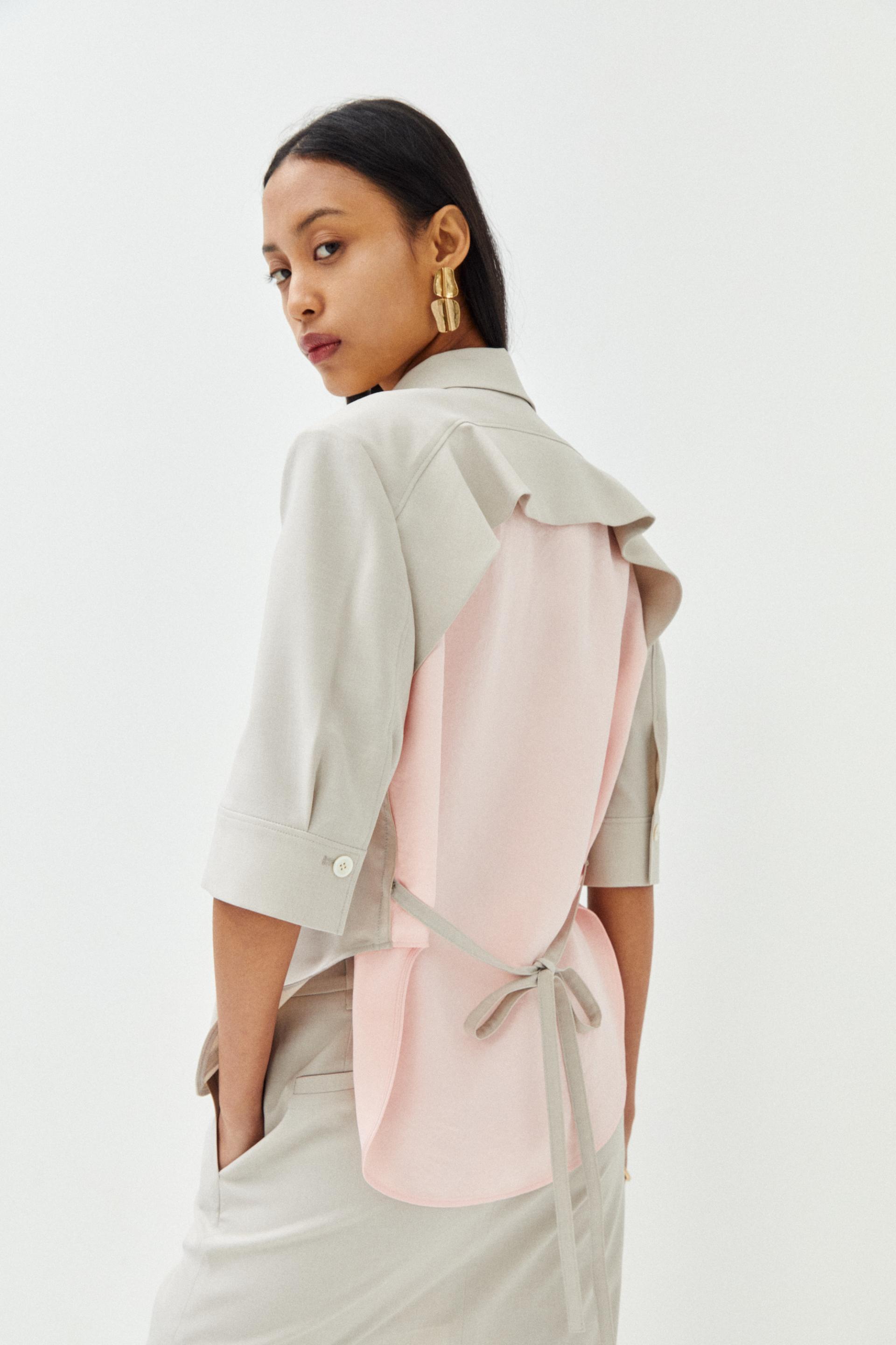 러플 장식과 칼라 배색 포인트