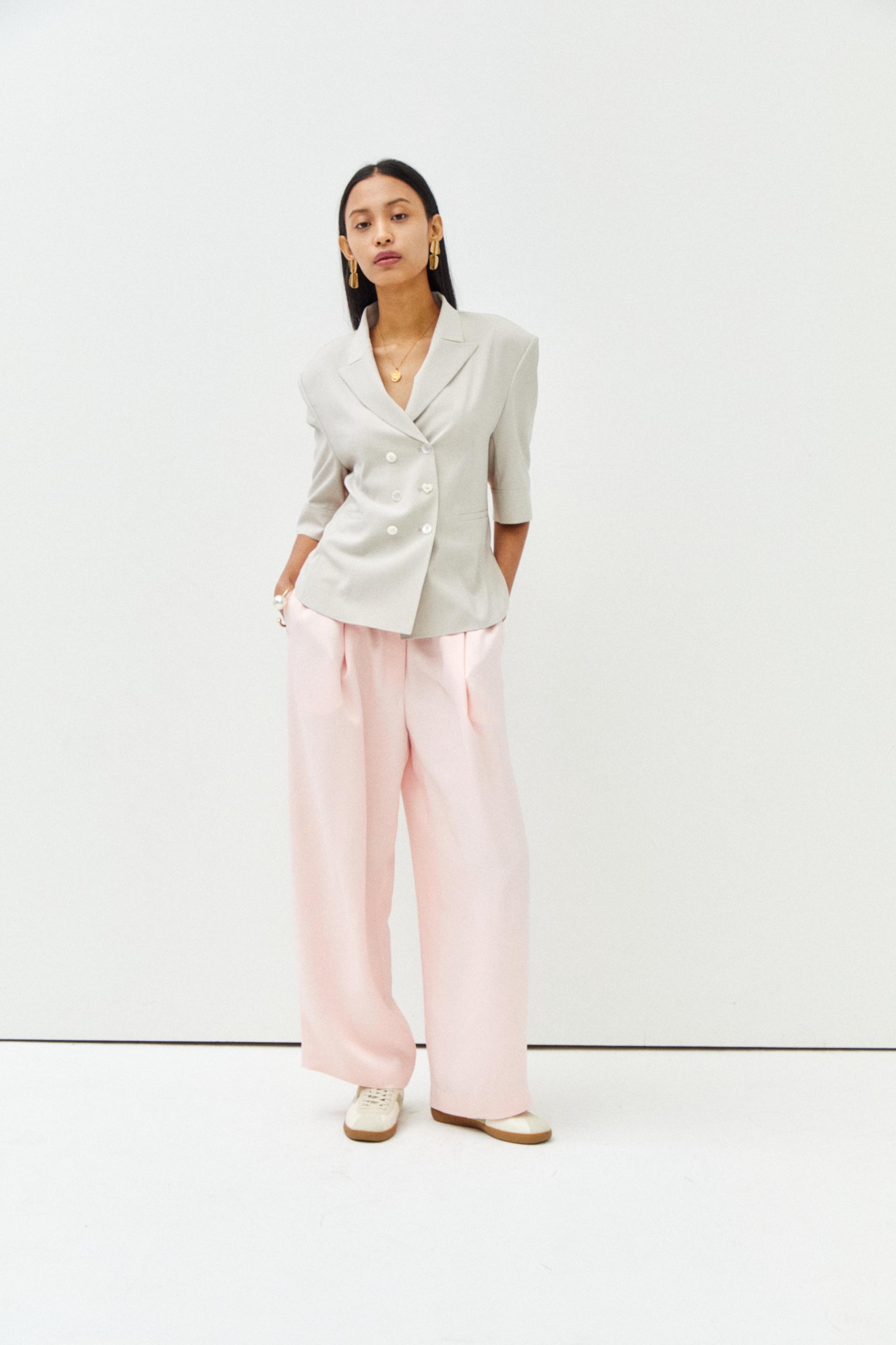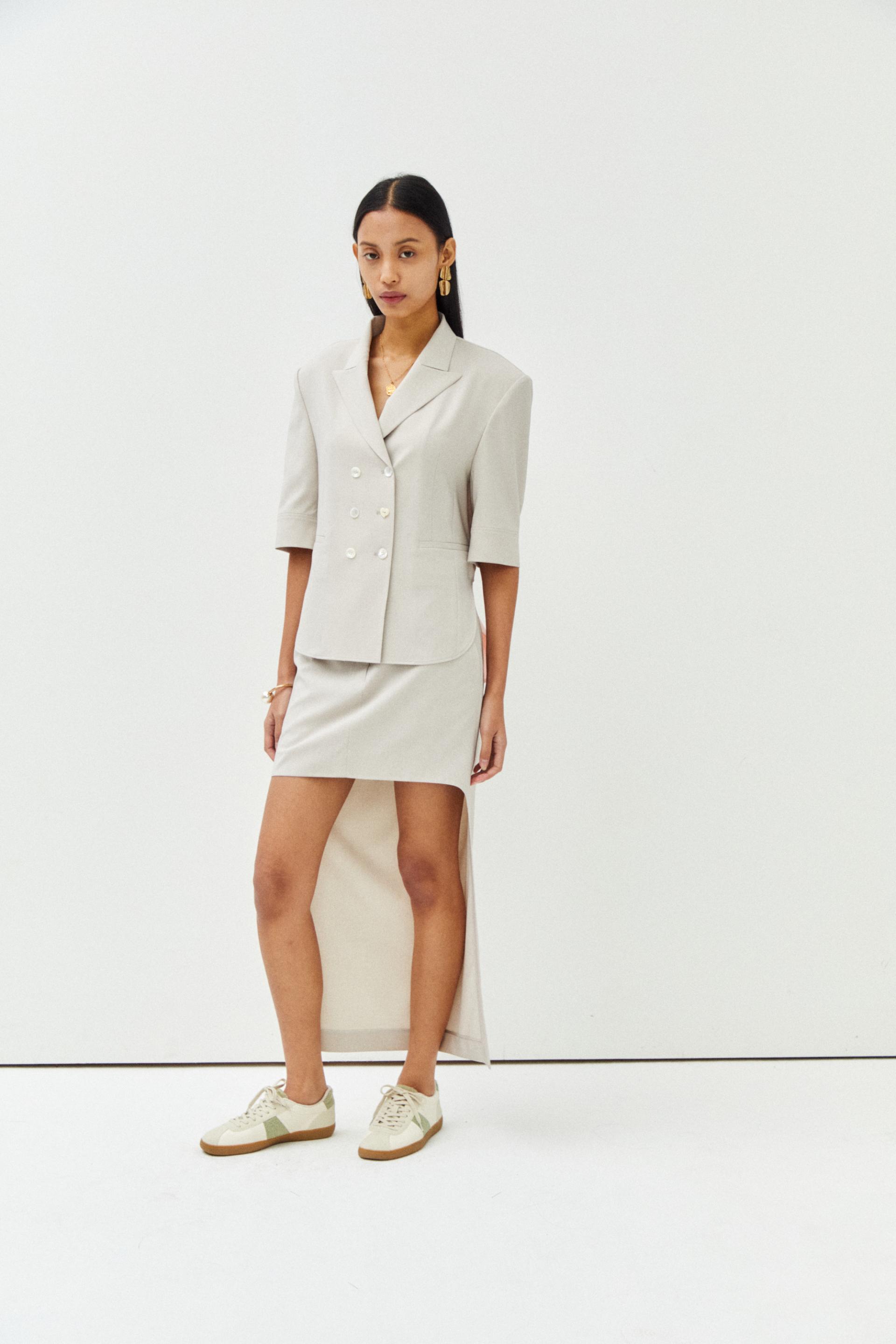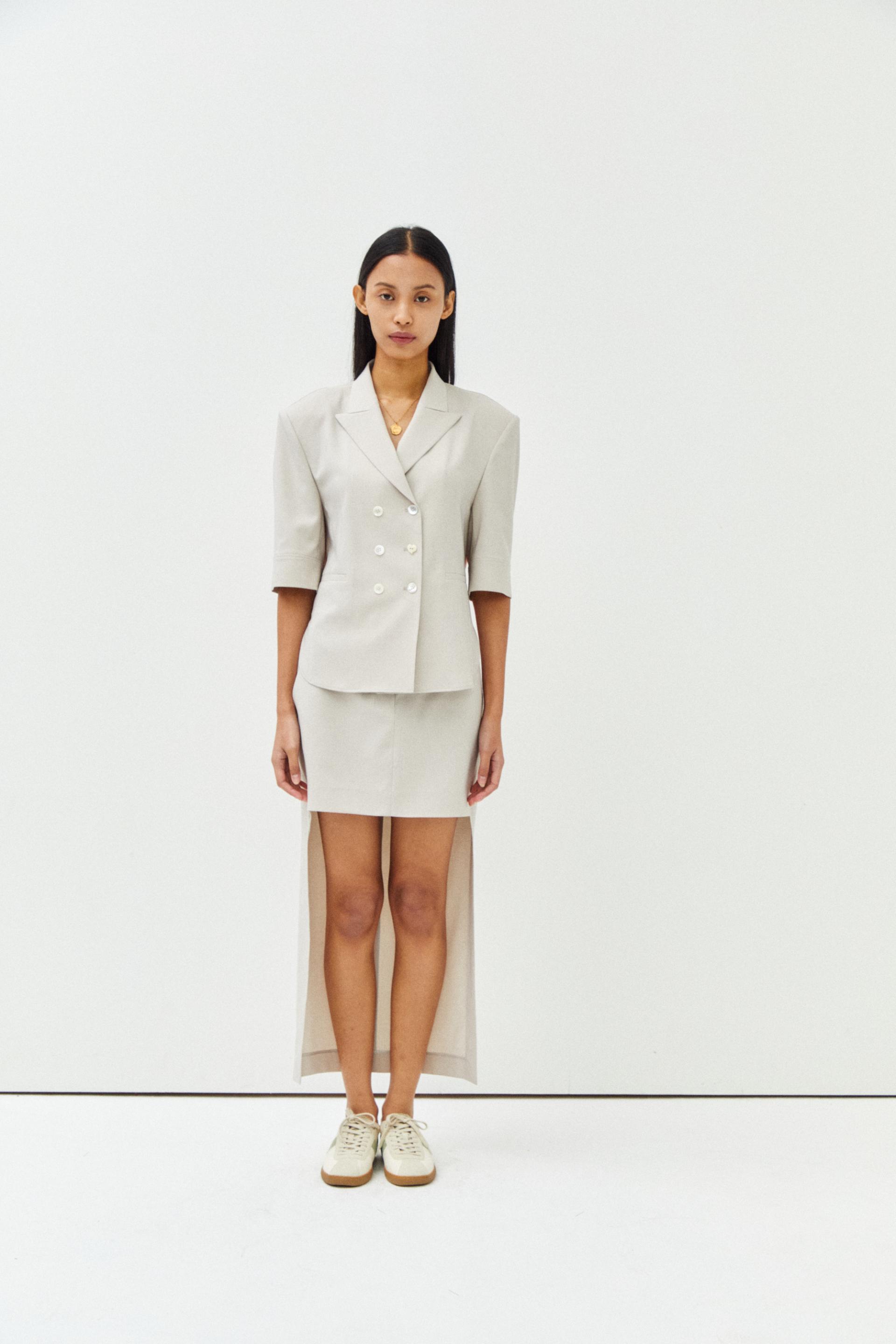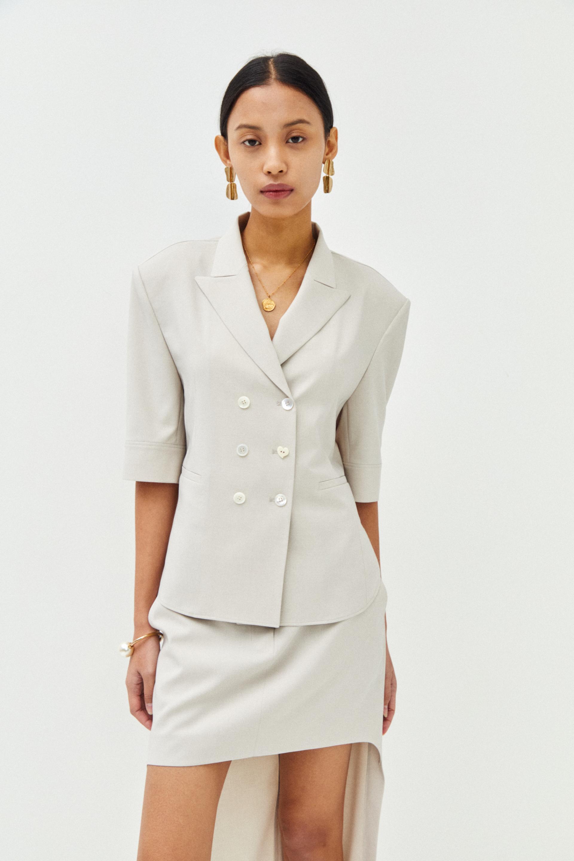 더블 버튼 오버 사이즈 반팔 자켓